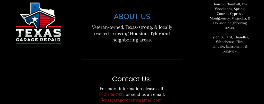 At Texas Garage Repair, we strive to provide the best garage door installation and repair services, serving Houston, Tyler, & Neighboring areas. With over a decade of experience and a steadfast commitment to excellence, we've built a reputation as the trusted choice for homeowners and business owners alike. As a proud veteran-owned and locally operated garage door company, we bring integrity, precision and unmatched expertise to every job.